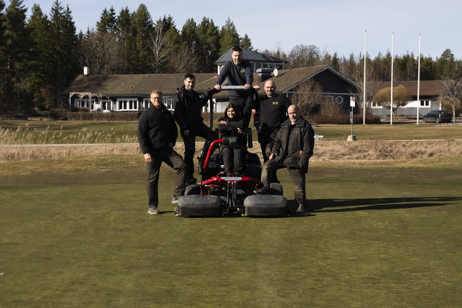 Titta på bilden ovan. Dels på den förväntansfulla banpersonalen på Waxholm. Men också: titta på greenerna. Hur jämna och fina de är, trots att det fortfarande är mars.